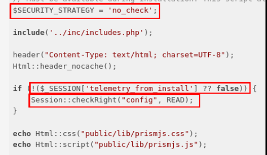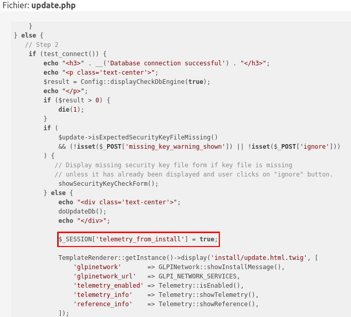 It is important to note that most of the GLPI files are not accessible without authentication. Because of this, the attack surface on this software is reduced. However, the update.php script is accessible by an unauthenticated user. And this file contains juicy information. I started looking at it, and I immediately saw that this script under certain parameters, disclosed telemetry information.