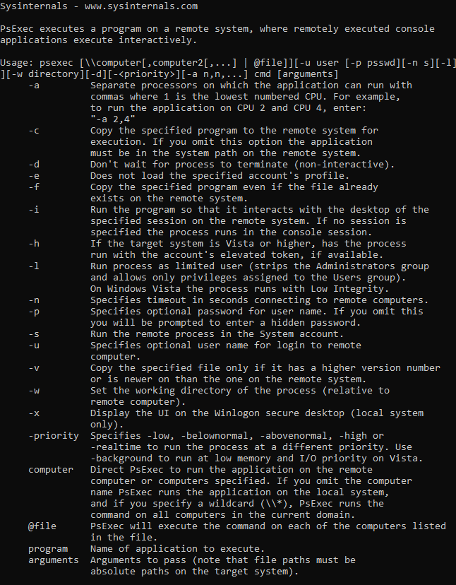 Lots of people have already explained it, but since we are going to mimic it, I thought it would be interesting to explain it one more time. For those unaware, PsExec.exe is one binary among an entire toolkit called Sysinternals which was first released in 1996 by Mark Russinovich. As of today, the latest version of PsExec.exe is version 2.43 which can be downloaded here.