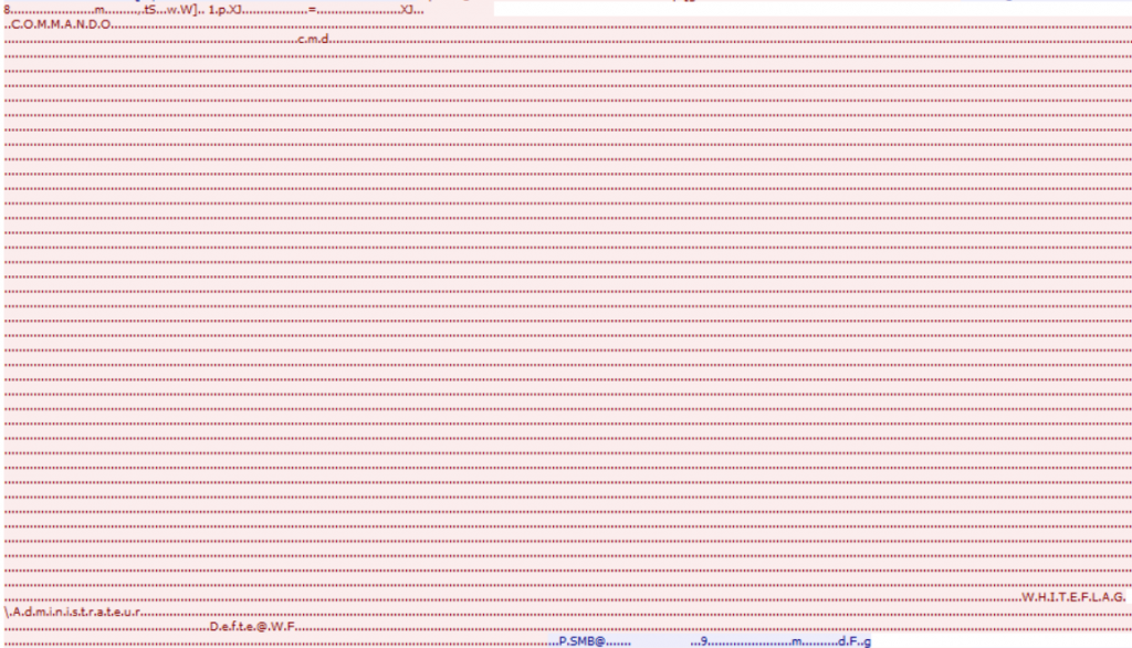We can also see that a program is specified, cmd.exe, as well as the computer name from where PsExec.exe was executed (a VM of mine whose hostname is COMMANDO). Notice that all this clear text information is surrounded by null bytes. That is because that data is not just random data, but is a structure whose contours can be seen:
