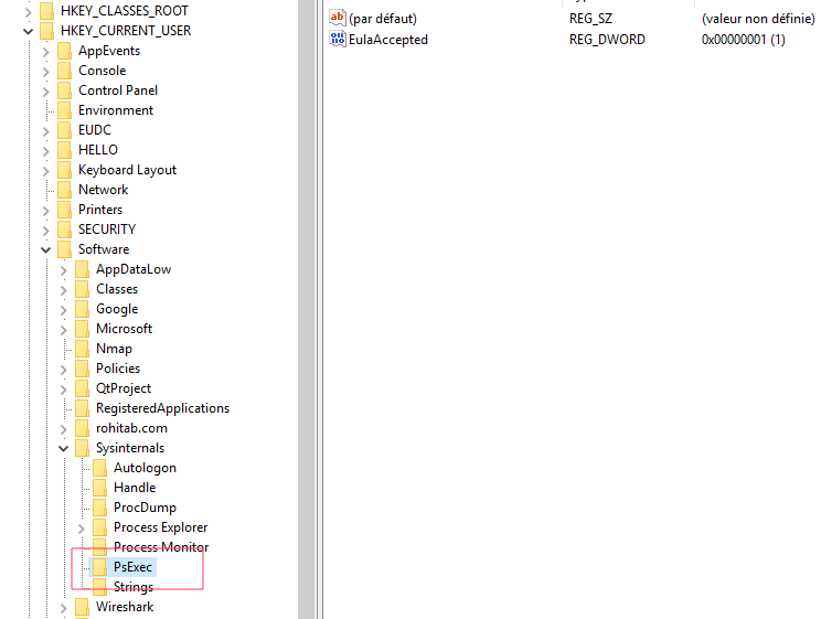 HKCU\Software\Sysinternals\PsExec