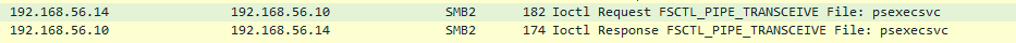 Right after this pipe is set up, a transceive operation occurs between the client (PsExec.exe) and the server (PsExeSVC.exe) where they both send their version and receive the version of the other part: