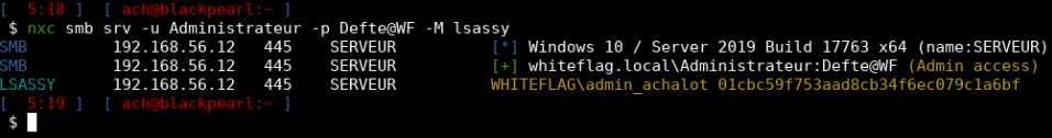 PsExec.exe \\dc.whiteflag.local -u WHITEFLAG\Administrateur -p Defte@WF cmd