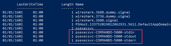 - PSEXECSVC-X-Y-stdout used to retrieve the output of the command ;